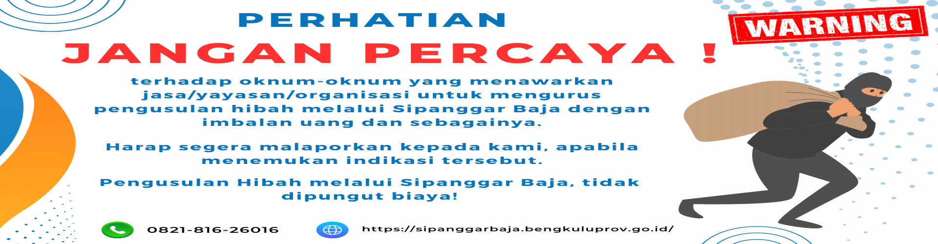 Daftarkan diri/lembaga/LSM anda untuk di verifikasi sebagai penerima hibah,klik menu daftar | Login